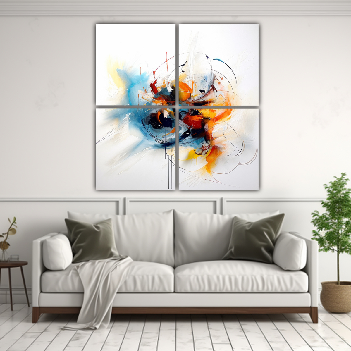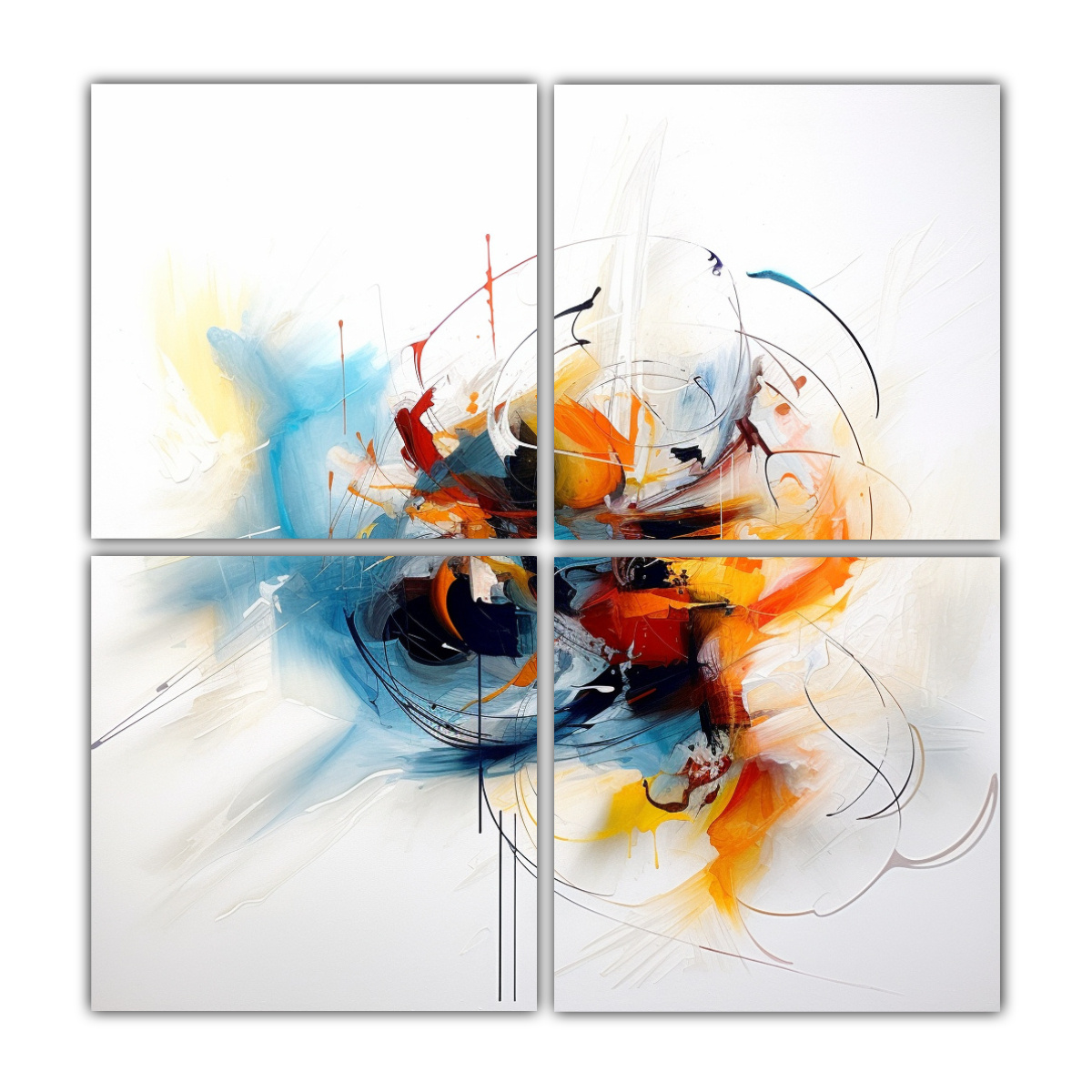 Cuatro Lienzos De Tela Conceptual Abstracto En Armonía De Colores
