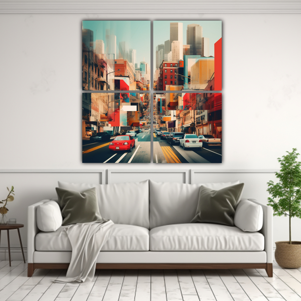 DecoCuadros te ofrece los Cuatro Lienzos de Tela Conceptual Pop Art en colores plateado, azul marino grisáceo, carmesí, gris, coral, menta y verde azulado La mejor opción para decorar tu hogar de forma exclusiva