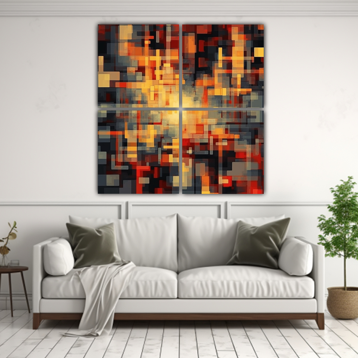 Cuatro Lienzos De Tela Dibujo Abstracción Equilibrio