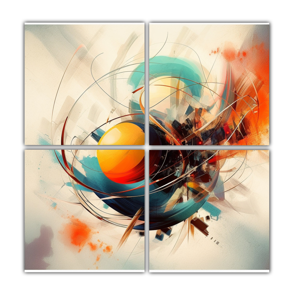 Este cuadro ‘Cuatro Lienzos De Tela Fotografía Abstracta de Espacio’ es perfecto para decorar tu sala de estar o dormitorio Su combinación de colores en tonos beige, azul marino grisaceo, carmesí, coral, gris, turquesa, blanco y menta le dará un toque moderno y sofisticado a tu espacio Puedes colocarlo en una pared blanca para que resalte, o combinarlo con tonos neutros para crear una atmósfera relajante ¡Atrévete a darle vida a tus paredes con este hermoso cuadro!