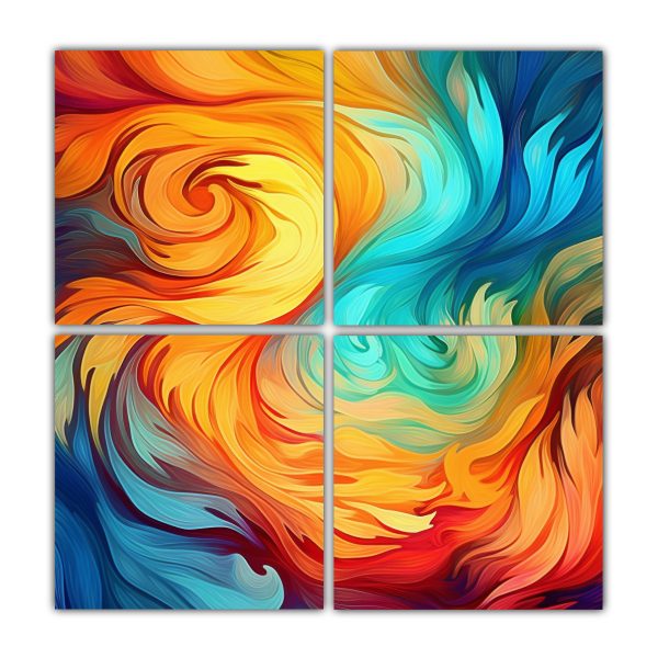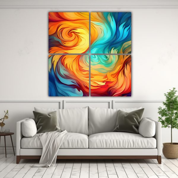 Decora tu hogar con Cuatro Lienzos De Tela Hermoso Arte Abstracto con remolinos de colores Estos cuadros impresos en tela de alta calidad con bastidores de madera darán un toque único a tus espacios Azul Marino grisaceo, Carmesí, Dorado, Turquesa, Gris, Amarillo Claro, Plateado, Coral son los colores protagonistas de esta obra de arte En DecoCuadros, tenemos los precios más económicos del mercado y las entregas más rápidas, gratis en Santiago y envíos express a regiones ¡Compra ahora y dale vida a tus paredes!