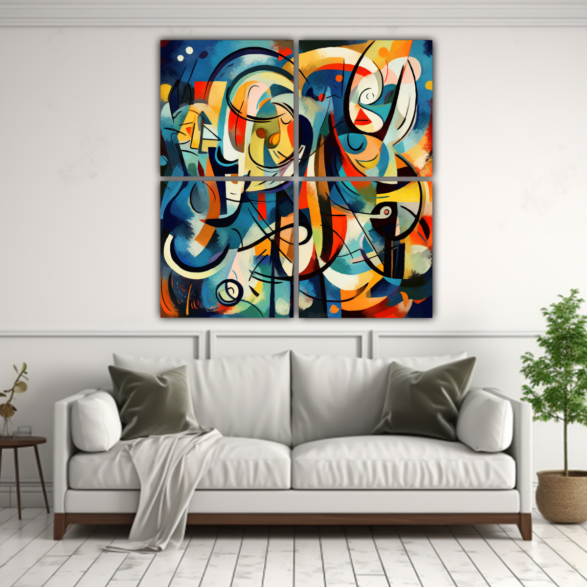 Este Cuatro Lienzos De Tela Moderno Minimalismo Abstracto estilo argentino imagen de fondo sería perfecto para decorar una sala o comedor moderno Colócalo sobre una pared de tonos neutros para que resalte el estilo abstracto y los colores vibrantes Combínalo con muebles en tonos plateados o blancos para lograr una estética elegante y contemporánea