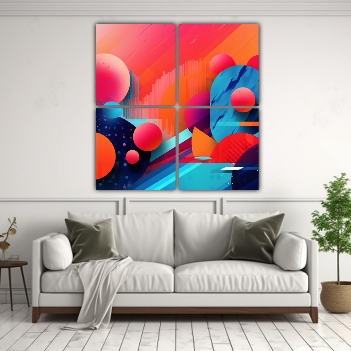 Este cuadro es ideal para decorar el salón o la sala de estar, combinando perfectamente con muebles en tonos neutros como blanco, gris o beige También puede ser colocado en un dormitorio para agregar un toque de color a la decoración ¡Dale vida a tus espacios con este impactante cuadro de DecoCuadros!