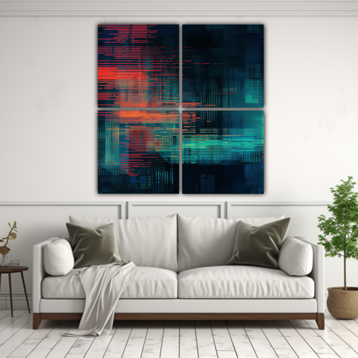 Cuatro Lienzos De Tela Temáticos Fantásticos Textura Digital Glitch