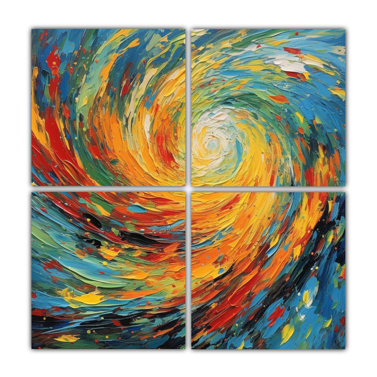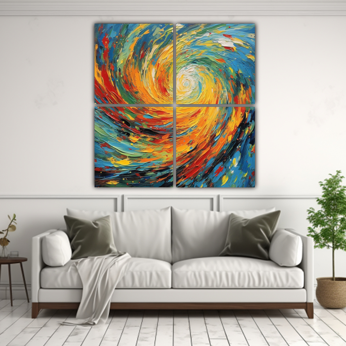 Cuatro Lienzos Movimiento Luminosa: Una Colorida Y Dinámica Obra De Arte.