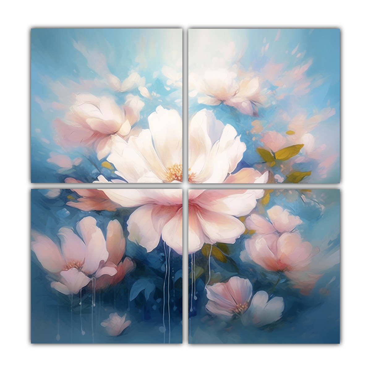 Cuatro Lienzos Riqueza Visual, Flores Abstractas Y Pequeñas, Movimiento Fluido