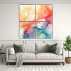 Este cuadro de Cuatro Pinturas Abstractas Acuarela Fondo Blanco es perfecto para realzar la belleza de tu sala de estar Colócalo sobre un mueble blanco para crear un contraste elegante y moderno ¡Atrévete a darle un toque de color a tus espacios!