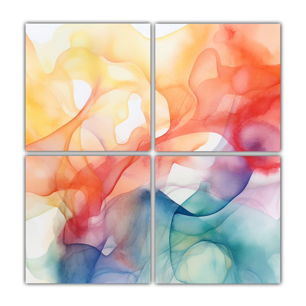 Decora tu hogar con Cuatro Pinturas Abstractas Acuarela Fondo Blanco de alta calidad y diseño exclusivo Envío rápido y gratuito en Santiago y envíos express a regiones