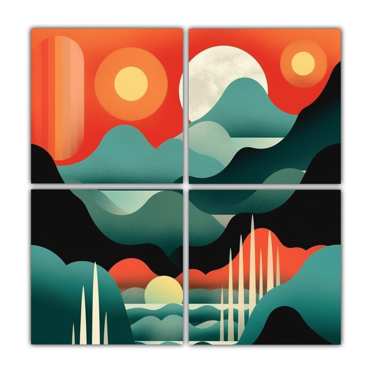 Cuatro Pinturas Lineales En Bastidor Con Diseño De Tarjeta Postal Escaneada Para Decoración Inspiradora.