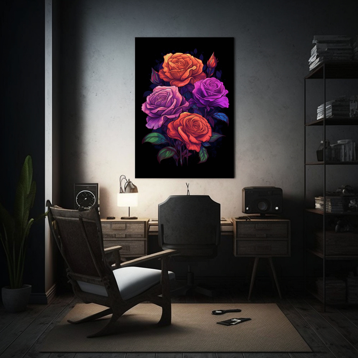 Cuatro Rosas Moradas Sobre Fondo Oscuro De González Pinturas Decorativas De Riqueza Visual