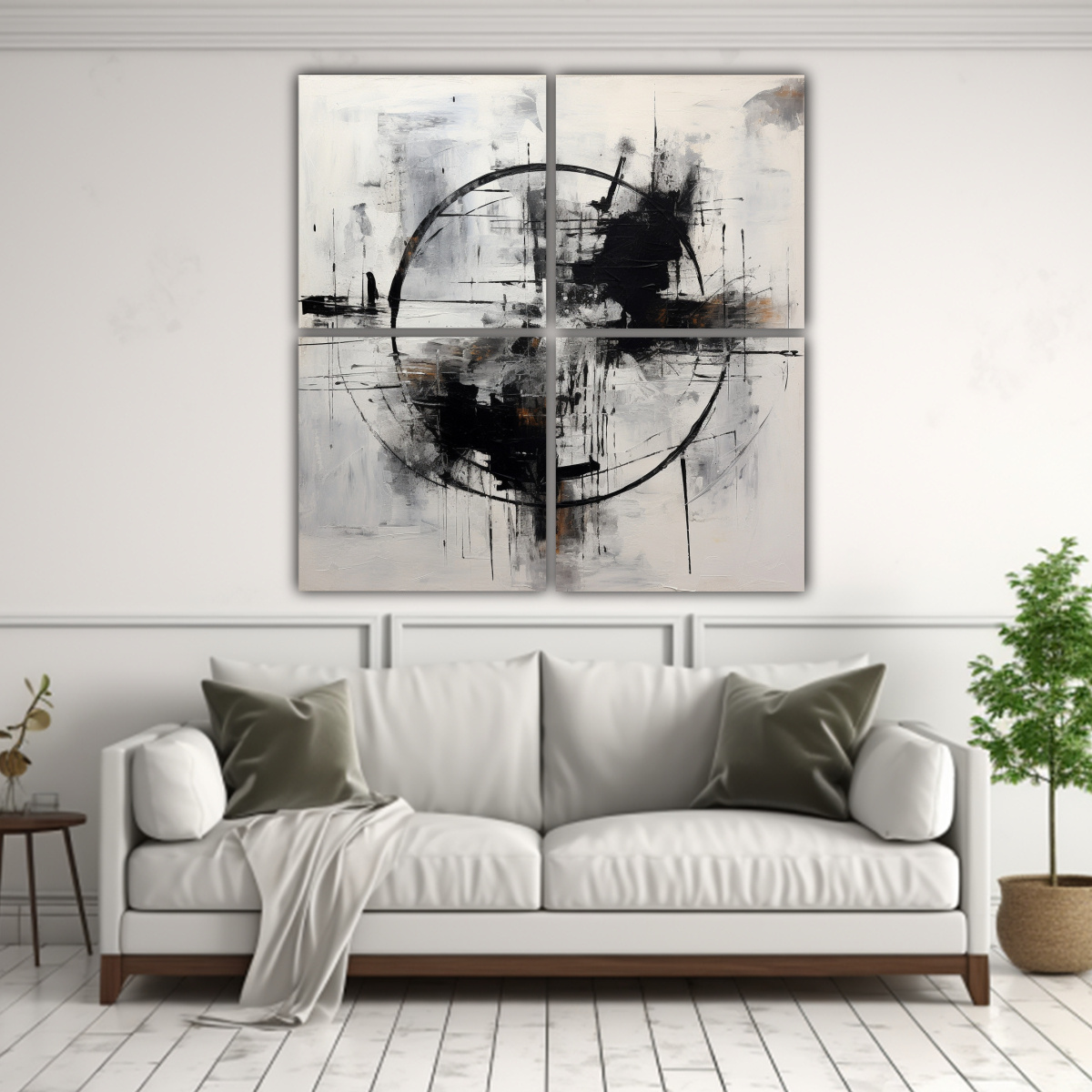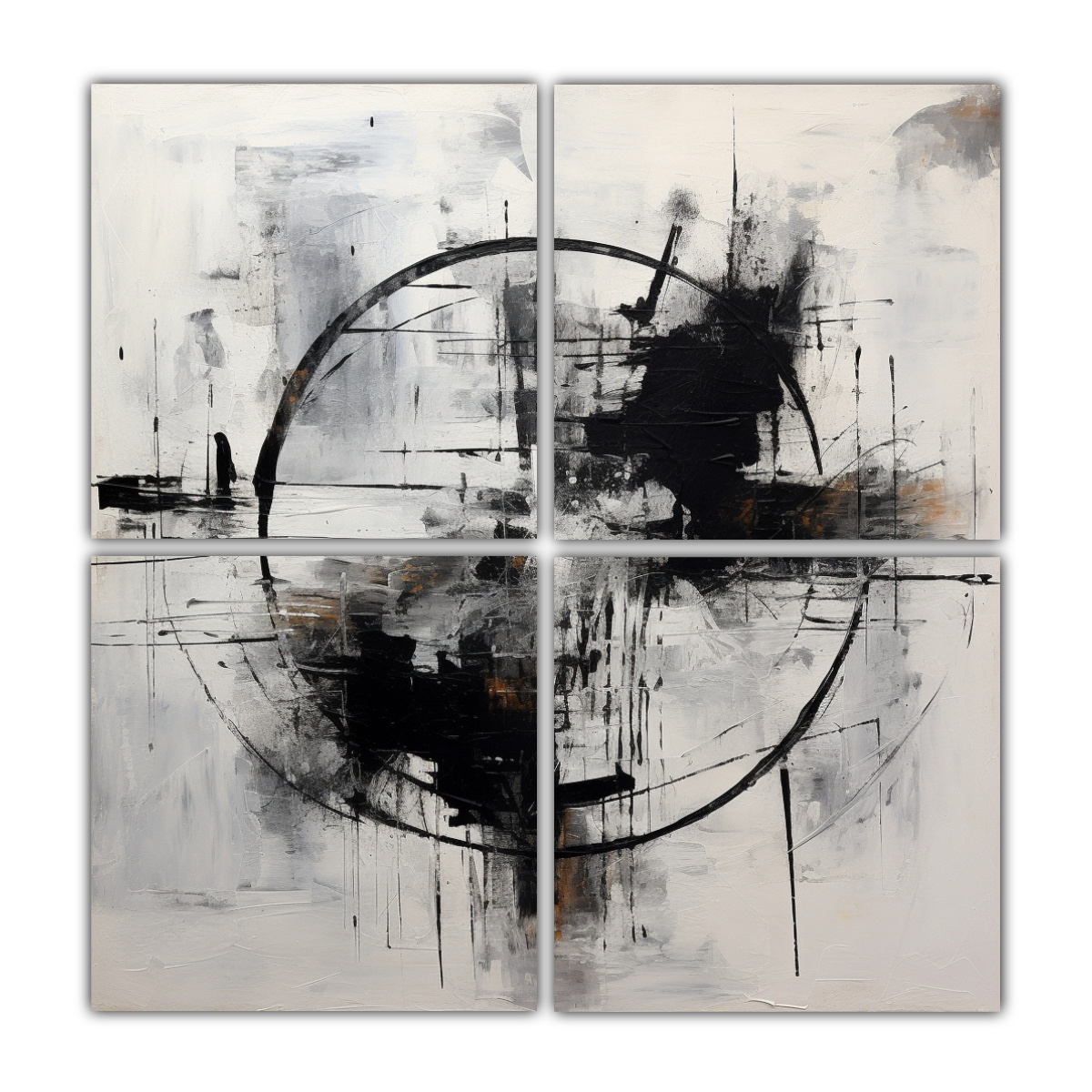 En DecoCuadros tenemos los diseños más exclusivos y las entregas más rápidas y gratuitas en Santiago Además, realizamos envíos express a regiones Aprovecha y adquiere nuestro cuadro de Cuatro Telas en Bastidor Concepto Motivo Abstract painting white and black
