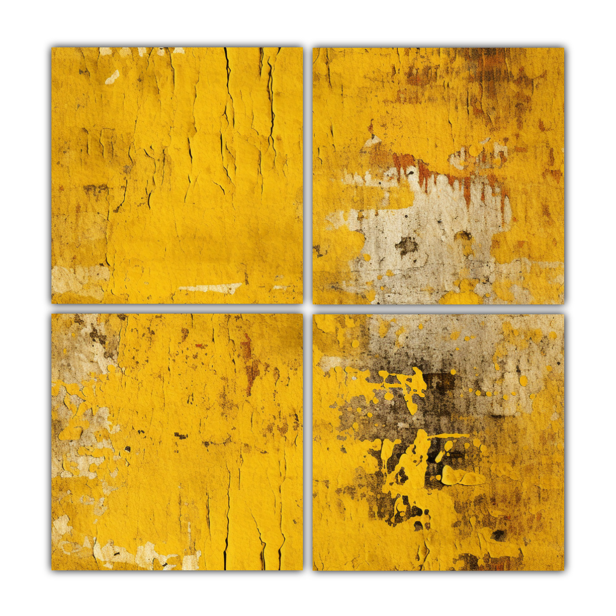 Cuatro Telas En Bastidor Abstracción Amarillo Textura Desgastada