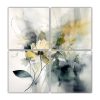 Cuatro Telas En Bastidor Abstractas De Patrón Dorado Y Azul Con Secuencias Doradas En Pinturas Decorativas.