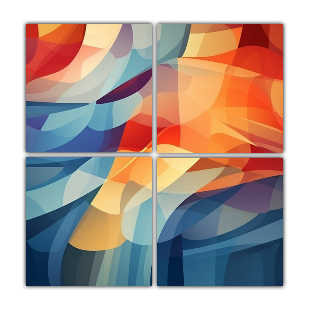 Este cuadro, Cuatro Telas en Bastidor Calidos Calidez, es perfecto para decorar cualquier espacio que necesite un toque de calidez y energía Colócalo en tu sala de estar o en tu dormitorio para crear un ambiente acogedor y relajante También puedes combinarlo con otros cuadros de nuestra tienda para crear una composición única en tu pared ¡Dale vida a tus espacios con este hermoso cuadro!