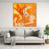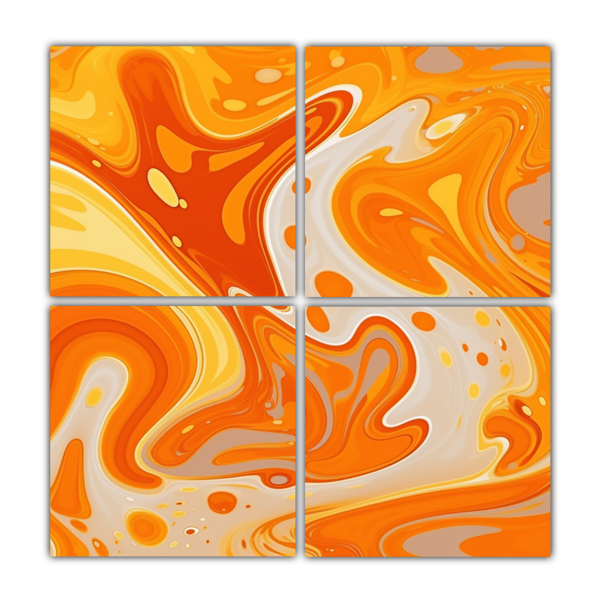 Cuatro Telas En Bastidor Creativa Calma Patrón Fluido Sobre Fondo Color Naranja.