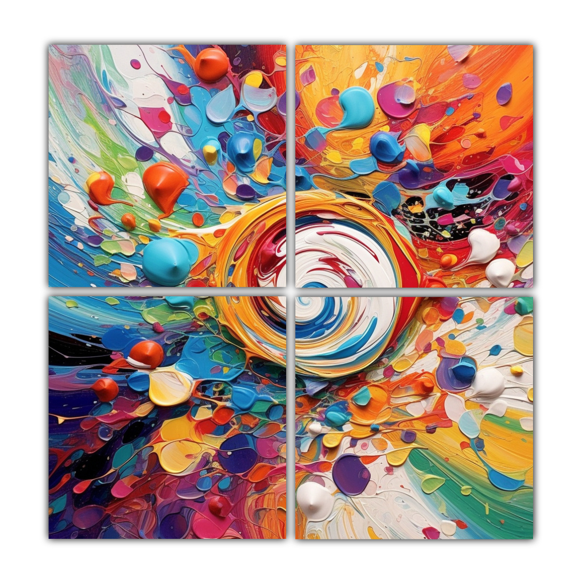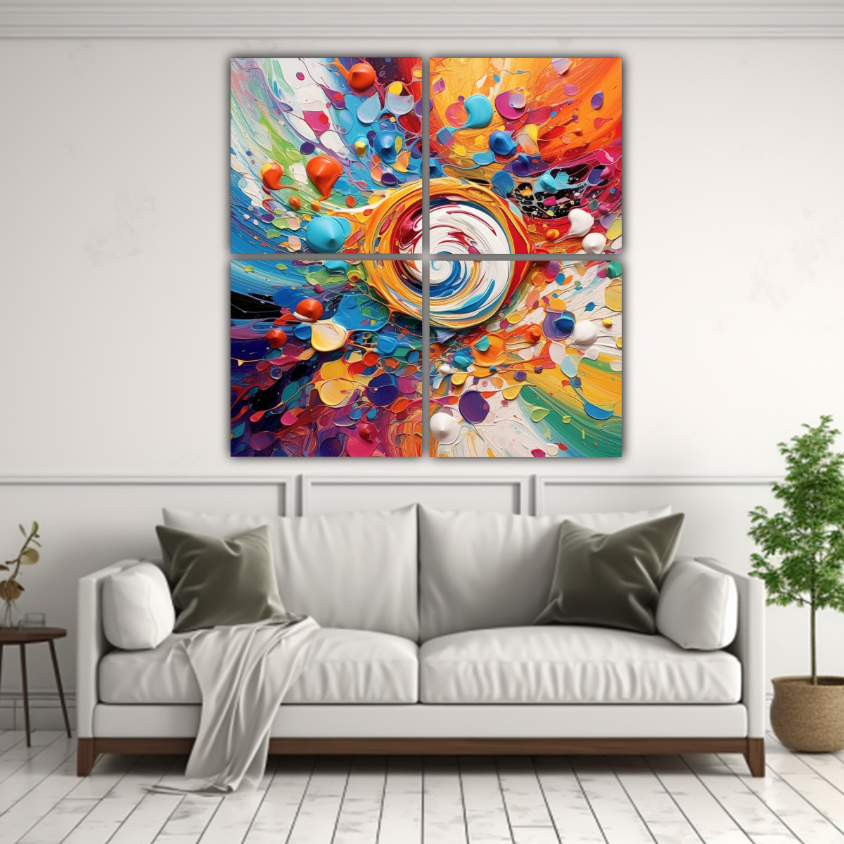 Este cuadro Cuatro Telas en Bastidor de Arte Abstracto Colorido y Cálido es perfecto para dar vida a tu sala de estar Colócalo sobre un sofá de tonos neutros para resaltar su vibrante paleta de colores También puedes combinarlo con cojines y cortinas en tonos similares para una decoración armoniosa ¡Atrévete a agregar un toque de color y vitalidad a tu hogar con este cuadro exclusivo de nuestra tienda!