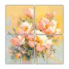 Cuatro Telas En Bastidor Diseño Adorable Flores Amarillas Y Magenta En Pintura Sobre Lienzo