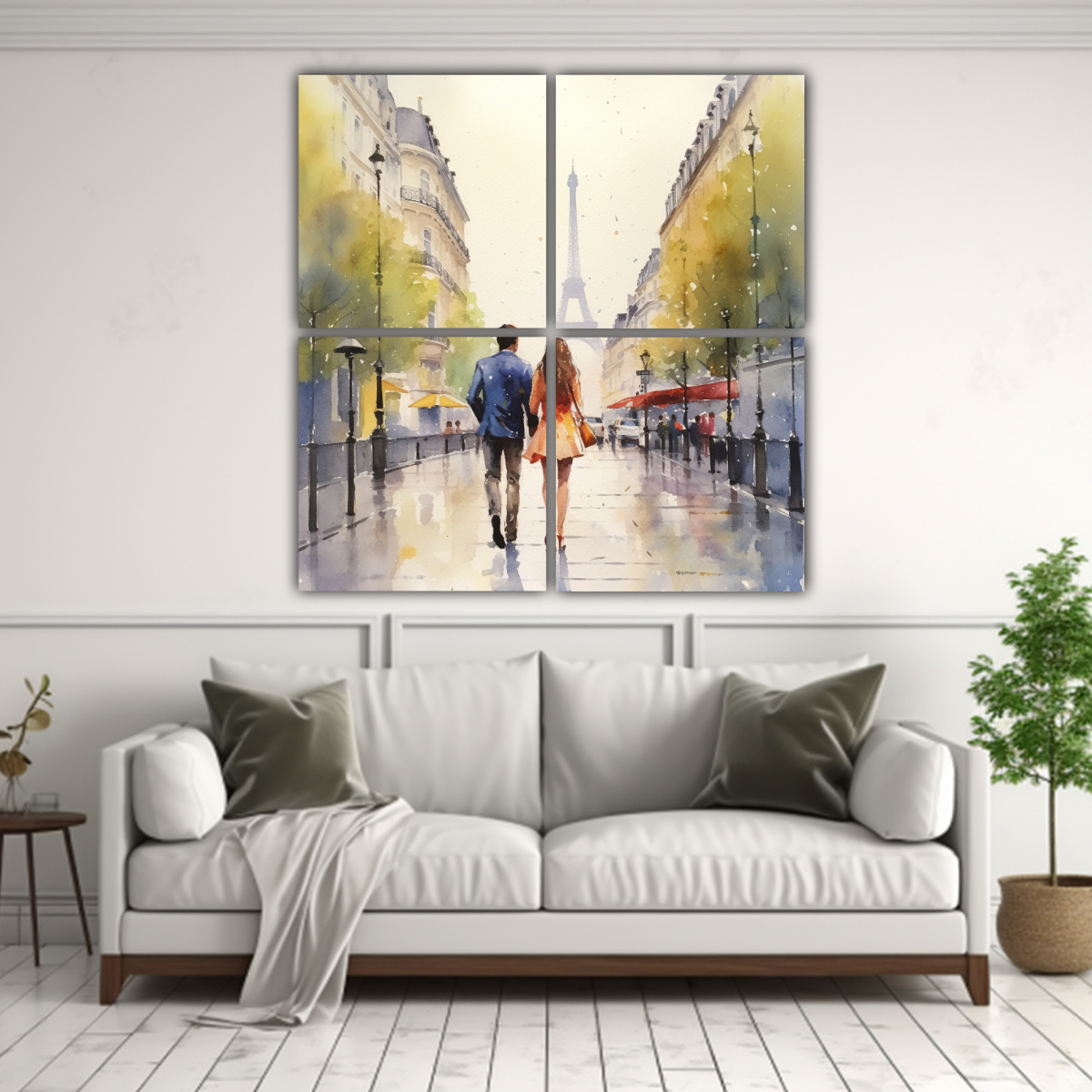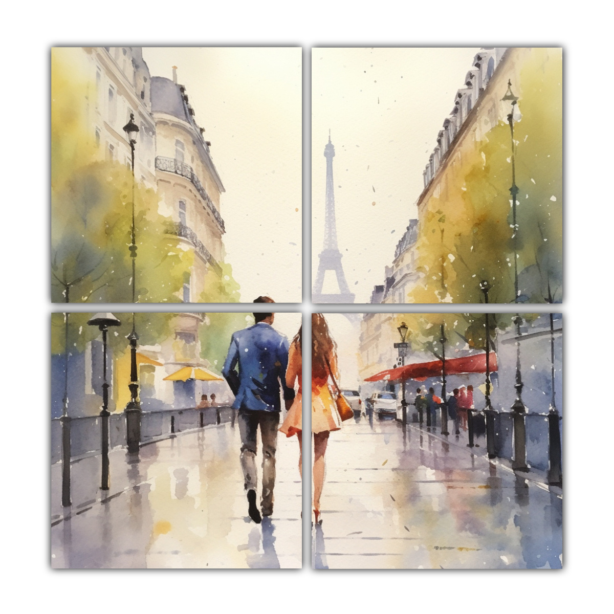 Decora tu hogar con los Cuatro Telas en Bastidor Tela Sublimada Época Walking in Paris romantic water colour de DecoCuadros La mejor calidad y los precios más baratos del mercado Envío gratis en Santiago y envíos a regiones express