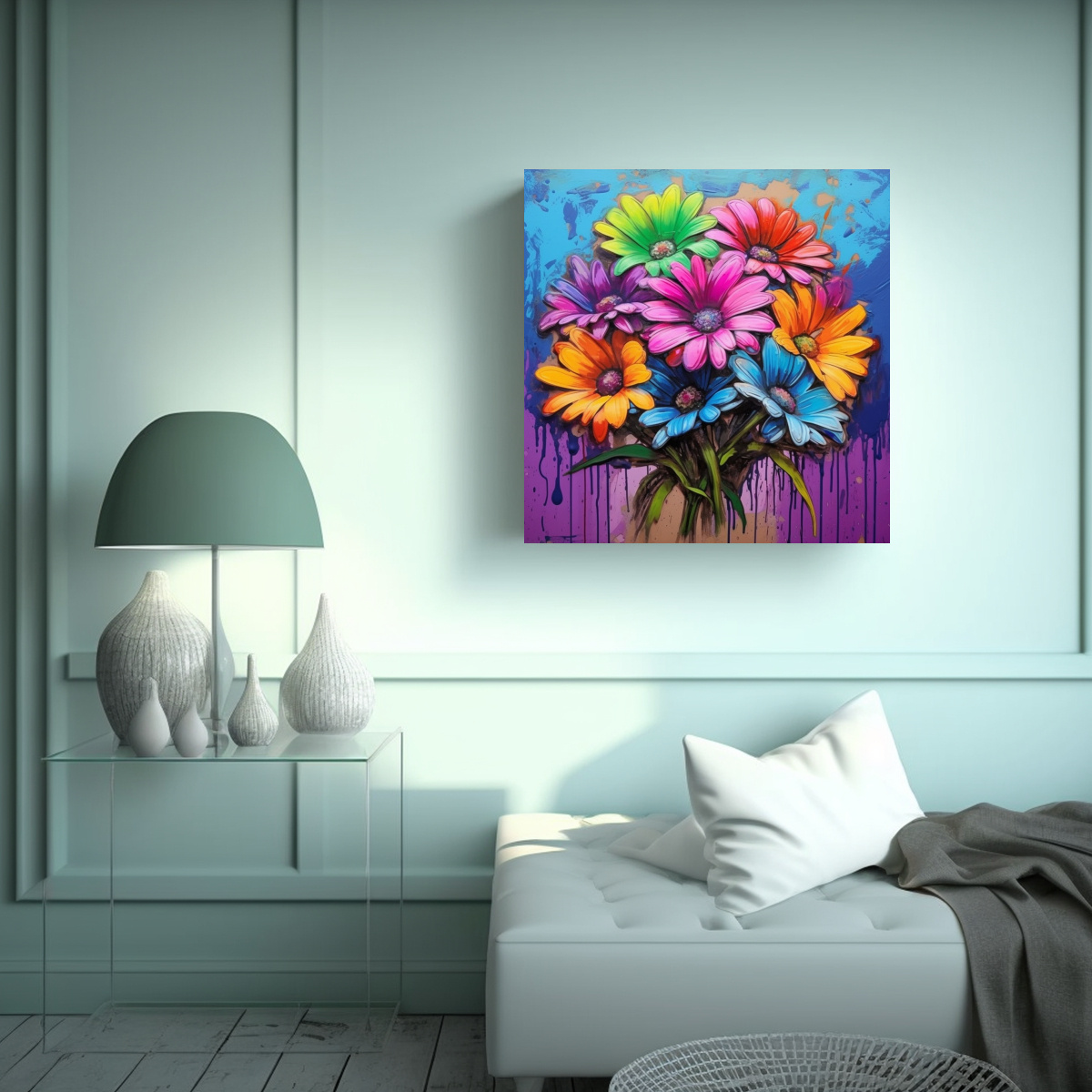Agrega un toque de color y originalidad a tu hogar u oficina con nuestro Cuadro Daisies de Arco Iris El diseño en graffiti con tonos reflejo y el ojo cibernético te transportarán a un mundo de creatividad y modernidad Con la mejor calidad del mercado y los precios más económicos, garantizamos la satisfacción de nuestros clientes Colócalo en tu sala de estar, dormitorio o sala de estudio para crear un ambiente único y vibrante
