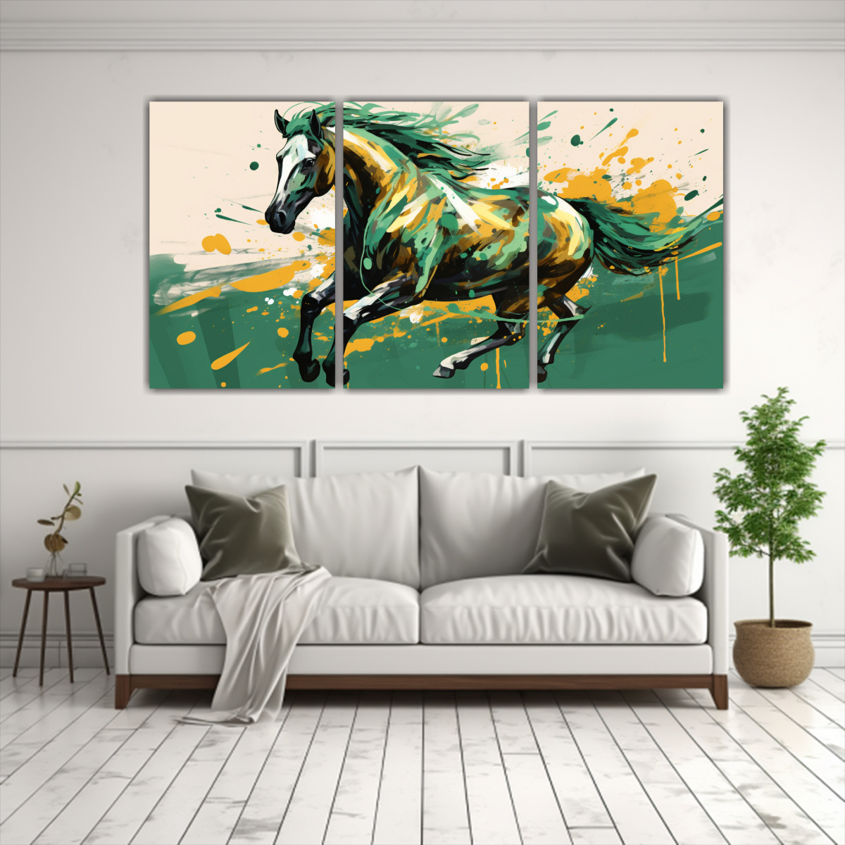Decoración Alegría Caballo Cuarto Verde Y Oro Arte Pop Neo