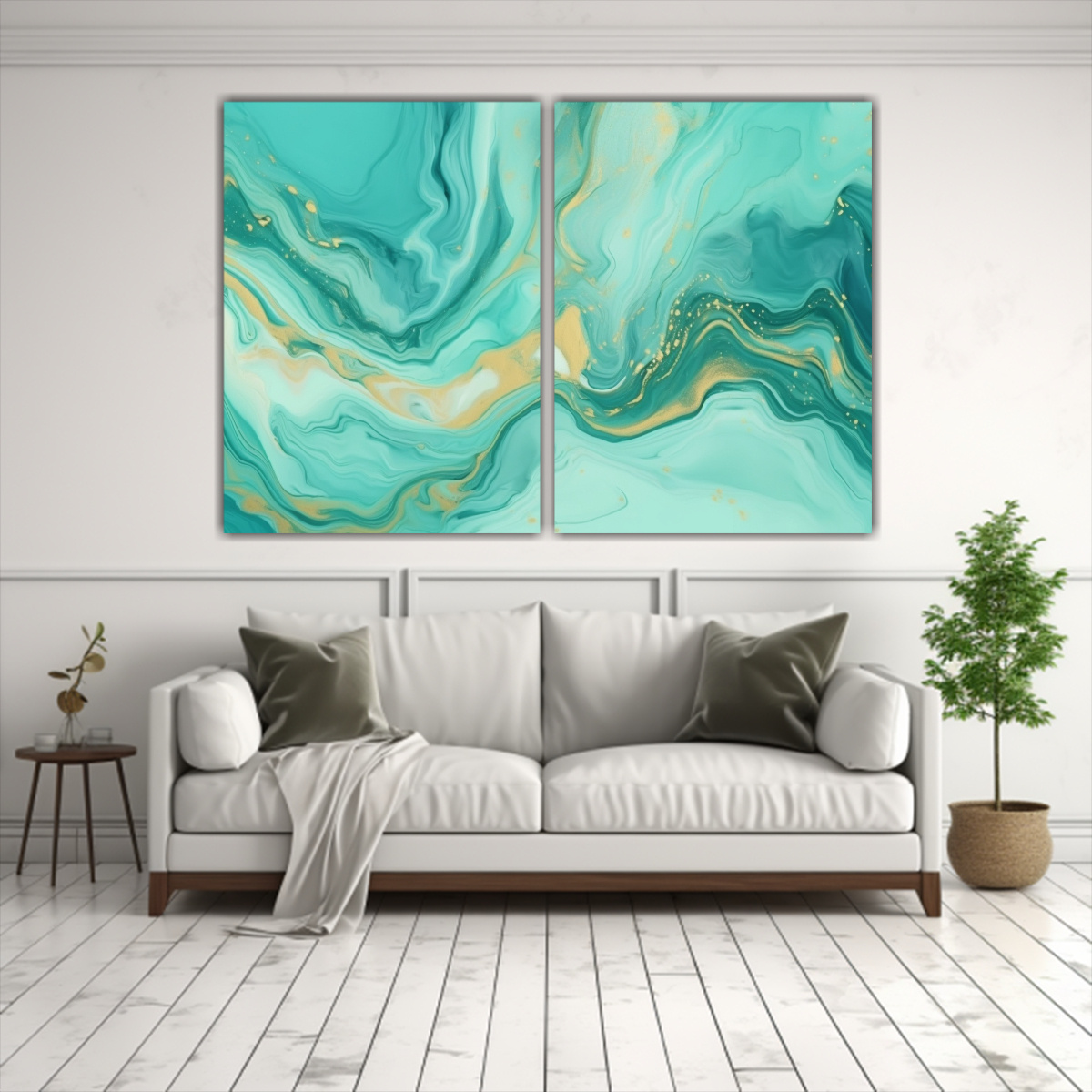 Agrega un toque de elegancia y frescura a tu espacio con este cuadro en tonos pastel cyan mint liquid marble watercolor Entrega gratis en Santiago y envíos express a regiones
