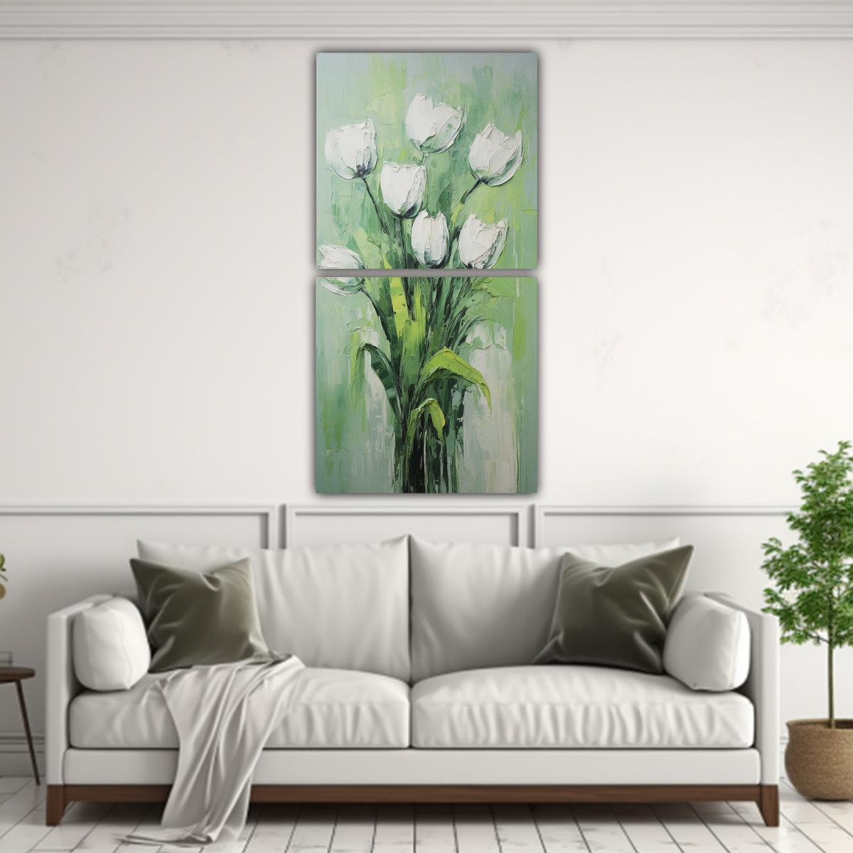 Decoración: Telas En Bastidor Expresión Green TULIPS Estilo Pintura Al óleo En Lienzo
