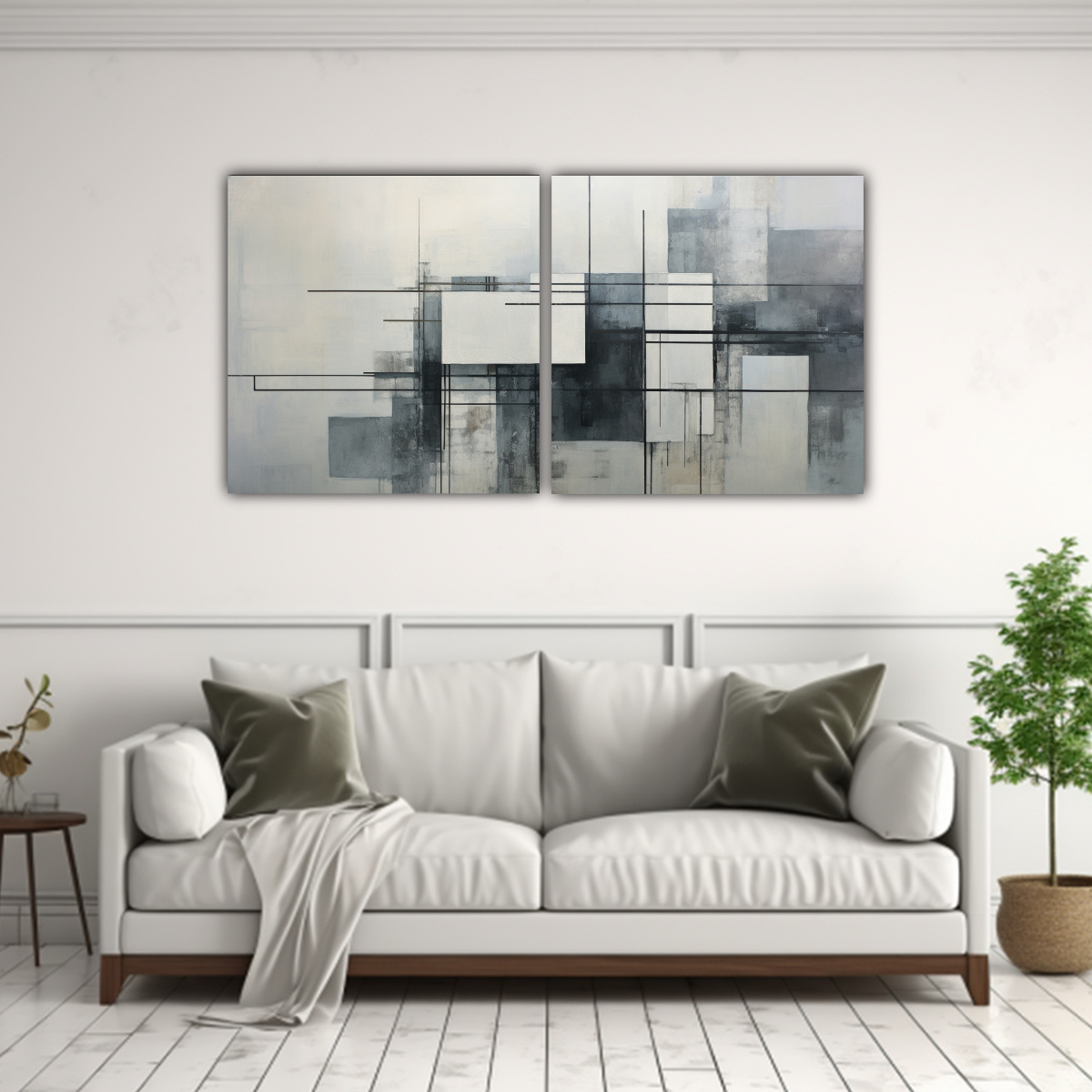 Decoraciones De Pinturas Abstractas Geométricas En Tonos Grises Industriales Y Metálicos
