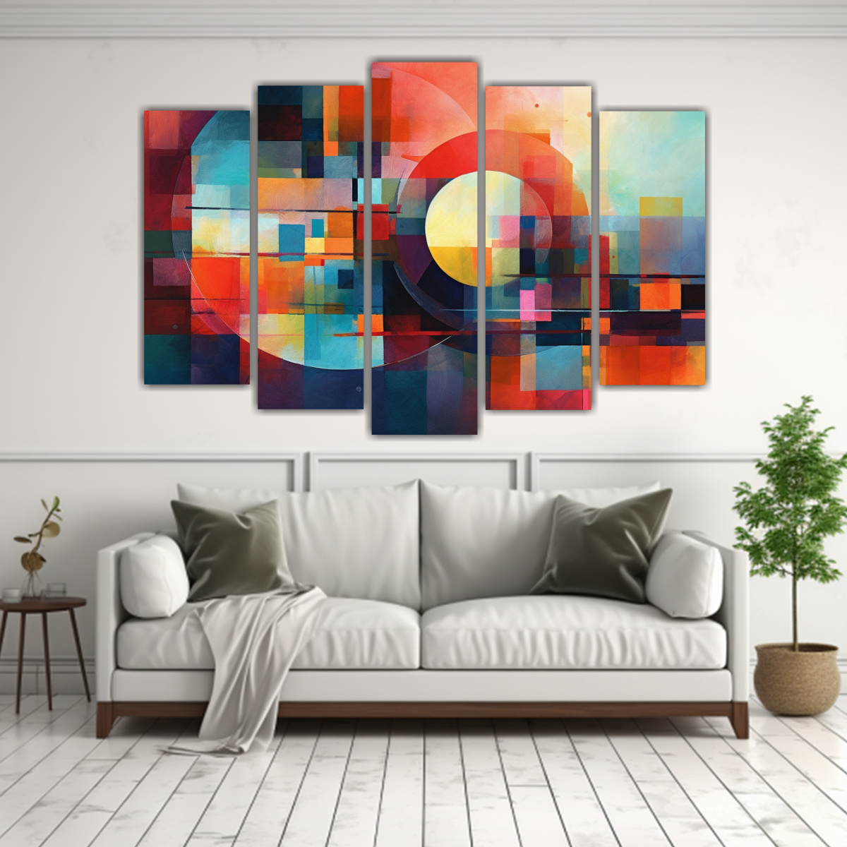 DecoCuadros te invita a descubrir la armonía entre formas geométricas y colores vibrantes con este set único Aporta un toque moderno y sofisticado a tu hogar con estos cuadros de alta calidad Renueva tu espacio con diseños exclusivos y disfruta de envíos rápidos y gratuitos en Santiago, y envíos express a regiones ¡Hazte con el tuyo ahora!