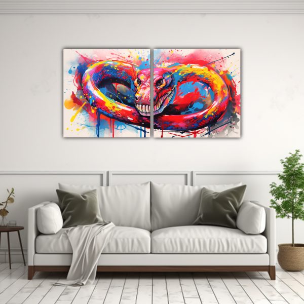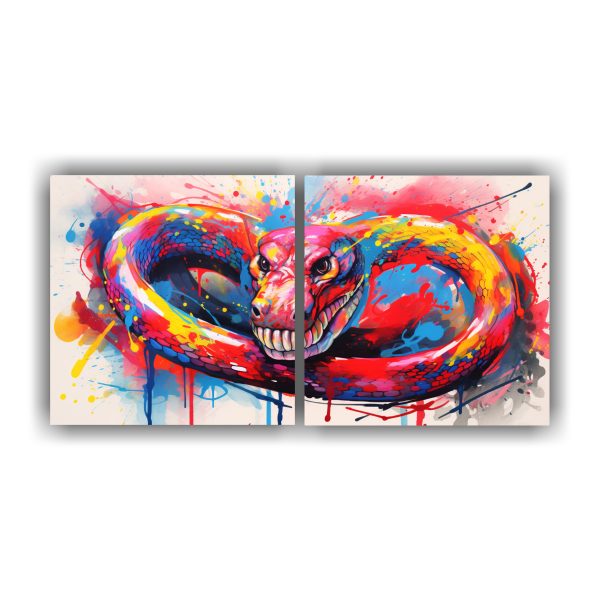 Este cuadro Cobra en colores arcoíris y rojo es perfecto para destacar en una pared principal de tu sala de estar, creando un punto focal llamativo Combínalo con muebles y accesorios en tonos neutros para un contraste elegante y moderno