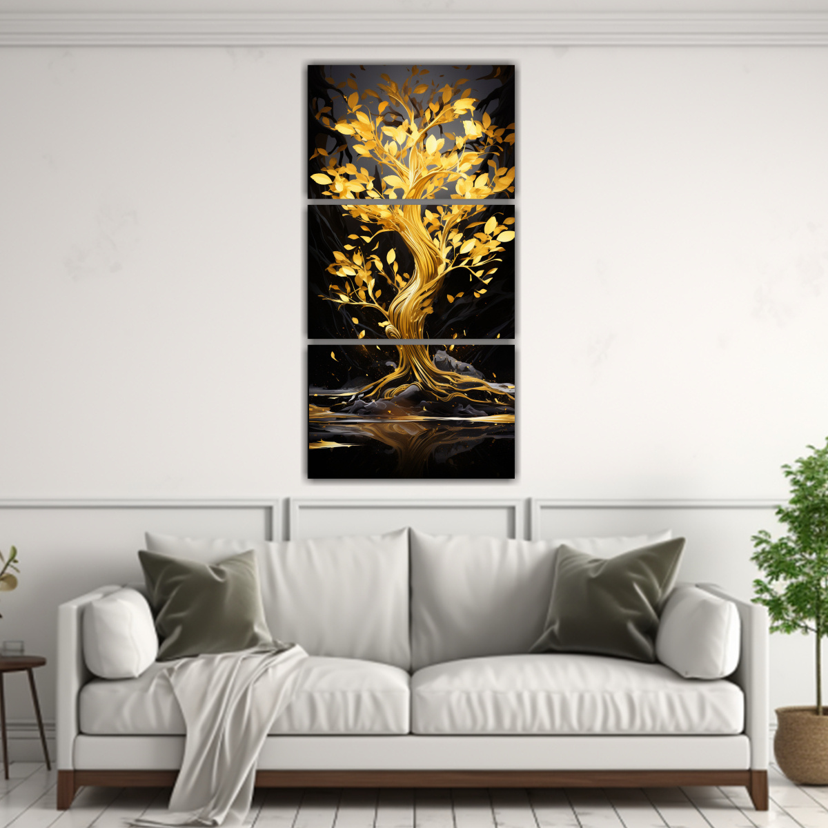 El cuadro ‘Árbol de Mangle en oro y negro’ presenta una atmósfera neonoir que realza cualquier espacio Con colores como chocolate, beige, azul marino grisaceo y gris, este cuadro destacará en tu hogar u oficina Atrévete a decorar con estilo y elegancia