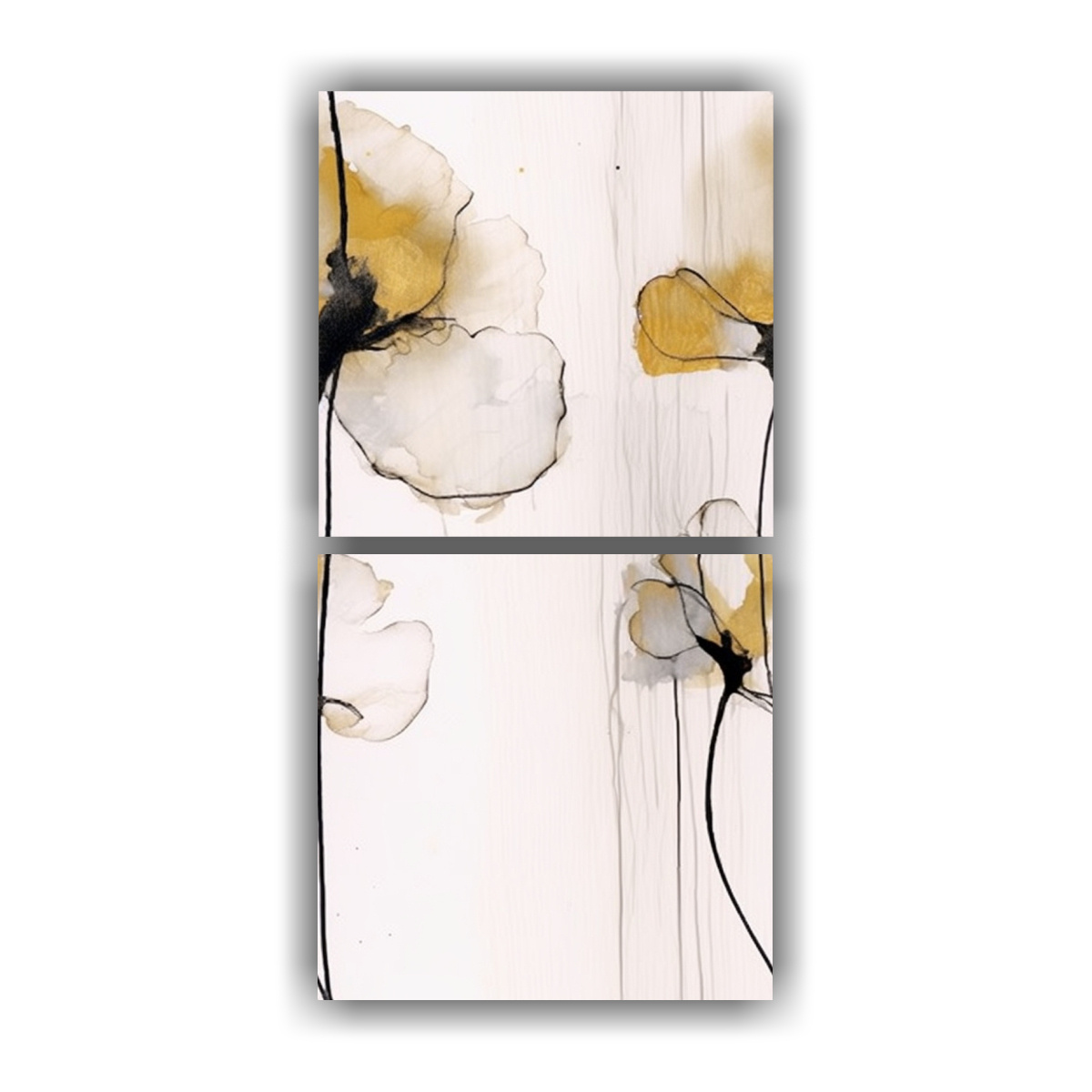 En DecoCuadros encontrarás cuadros decorativos impresos en tela de alta calidad con bastidores de madera Nuestro cuadro ‘Dibujo Colorido de Flor Amarilla estilo Dos Composiciones’ es ideal para destacar en tu sala de estar, dormitorio o incluso en tu oficina Su diseño colorido y vibrante le dará vida y alegría a cualquier espacio Además, su variedad de colores como beige, azul marino grisáceo, coral, gris, plateado y dorado le brindan versatilidad y la posibilidad de combinarlo con diferentes estilos de decoración