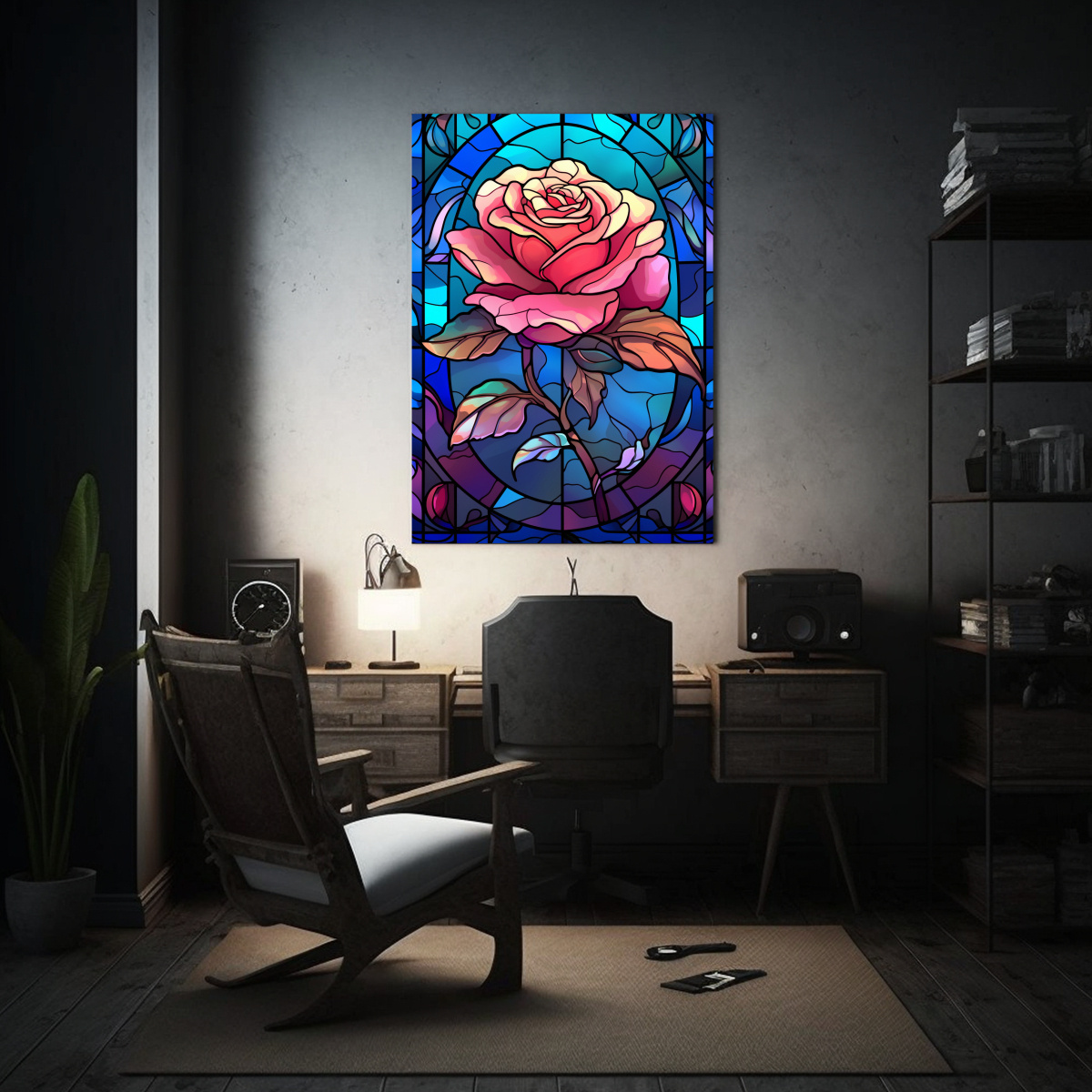 Dibujo Escena Vidriera Rosa Mágica Lienzo Detallado Hiperdecorativo.
