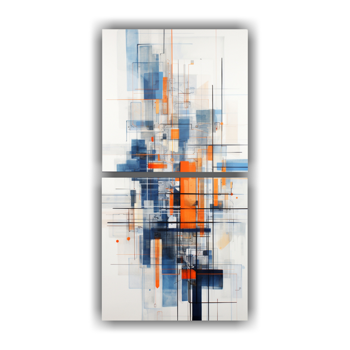 DecoCuadros ofrece el Cuadro Dibujo Expresivo Abstracto con Naranja e Índigo, con una combinación de colores Azul Marino grisaceo, Beige, Coral, Carmesi, Gris, Plateado y Turquesa Disfruta de diseños exclusivos y entrega rápida y gratuita en Santiago