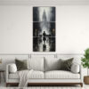 Este cuadro sería perfecto para decorar una sala de estar de estilo moderno Puedes colocarlo sobre un sofá de color neutro para resaltar los colores del cuadro Combínalo con cojines en tonos plateados, grises y azules marinos para crear una armonía en la decoración ¡Le dará a tu espacio un toque urbano y contemporáneo!