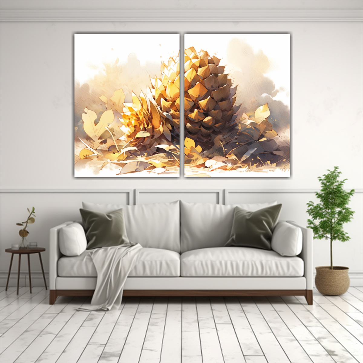 Coloca este díptico en la sala de estar sobre un sofá en tonos neutros para resaltar su belleza y agregar un toque de color Combínalo con cojines en tonos grises y blancos para una decoración armoniosa y sofisticada