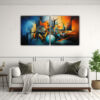 Este díptico abstracto sería perfecto para decorar una sala de estar moderna Puedes colocarlos sobre un sofá de color neutro para que los colores del cuadro resalten aún más Combínalo con cojines en tonos turquesa y dorado para lograr una armonía visual ¡Atrévete a darle vida y personalidad a tu espacio con este elegante y exuberante díptico!