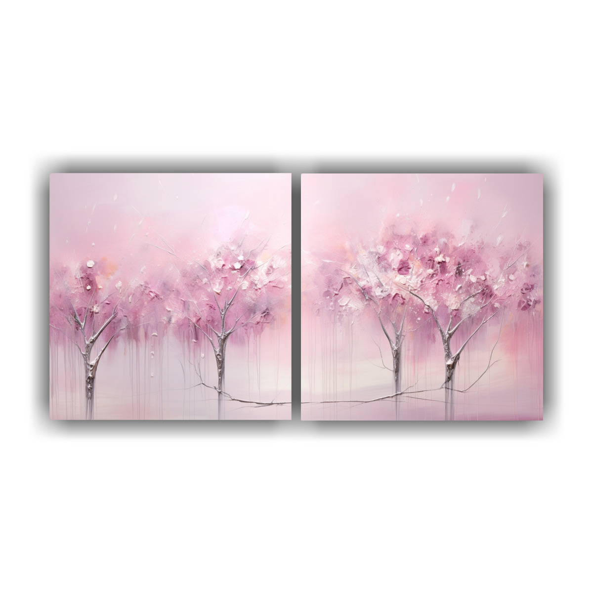 Diptico Acuarela Armonía Cromática En Rosa Y Plata En Estilo De Pintura