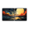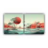 DecoCuadros te ofrece el mejor precio y calidad en cuadros decorativos Descubre nuestro díptico acuarela Figuras surreal abstractas paisajes estilo plano pixel estilizado en colores Coral, Azul Marino grisaceo, Carmesi, Dorado, Gris y Beige Diseños exclusivos, envío rápido y gratis en Santiago