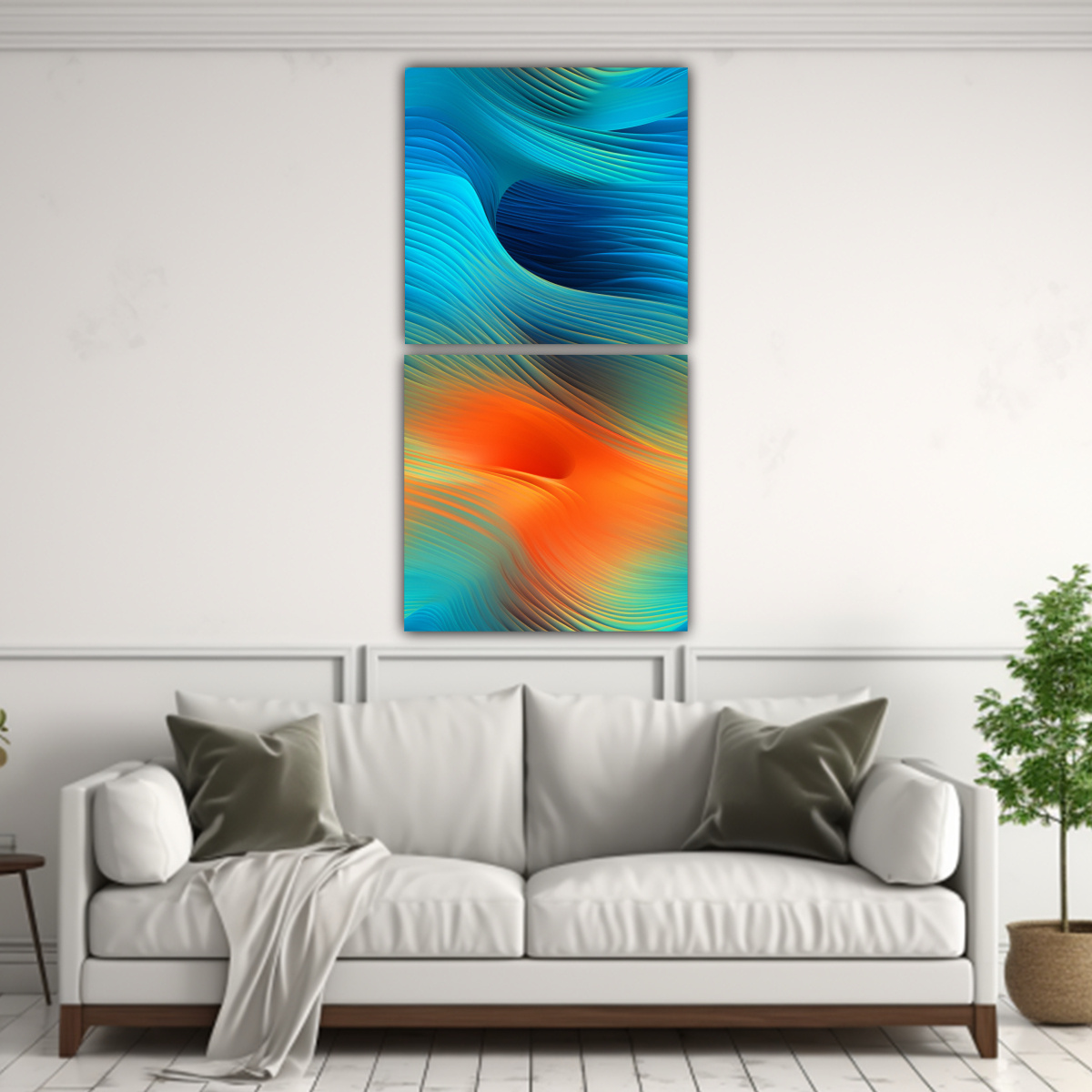 Este diptico acuarela Pop Art hiperrealismo en tonos azul celeste, verde menta y melón sería perfecto para decorar tu sala de estar Colócalo sobre un sofá blanco para resaltar su intensidad y combínalo con cojines en tonos turquesa y coral para crear un ambiente fresco y moderno