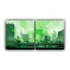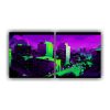 Díptico Acuarela Santiago De Chile En Colores Verde Y Morado Neo