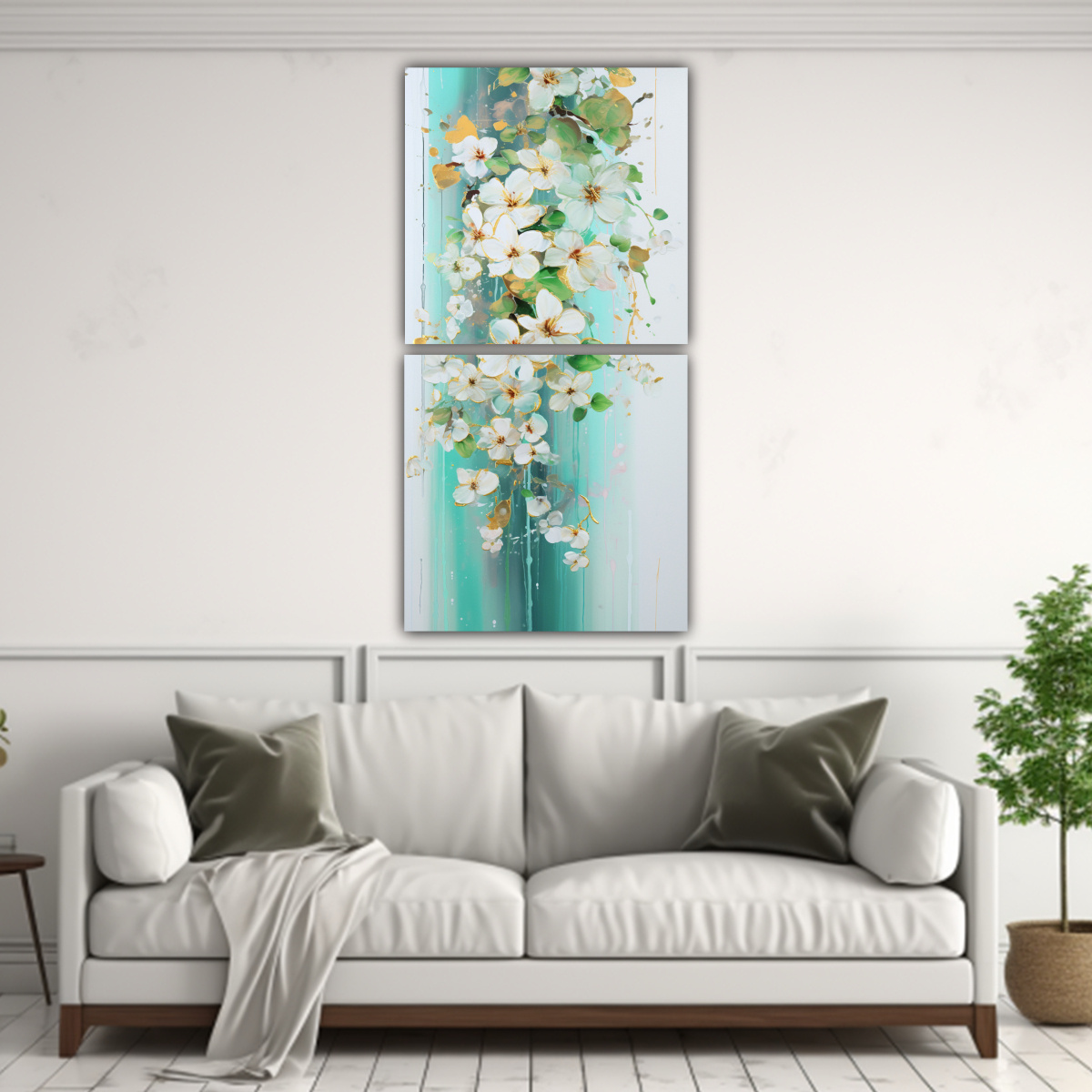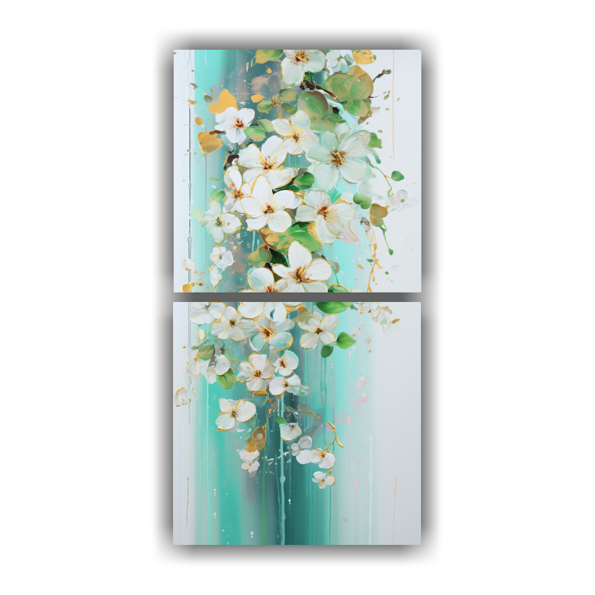 El Diptico Calidos Estética es perfecto para decorar salas de estar o dormitorios, ya que sus colores suaves y neutros como el Menta, el Beige y el Turquesa, combinados con el blanco de fondo, generan un ambiente cálido y relajante Puedes colocarlo sobre una pared de color neutro para que resalte o en una habitación con tonos similares para crear una armonía ¡Atrévete a darle un toque de elegancia y estilo a tus espacios con este hermoso cuadro!