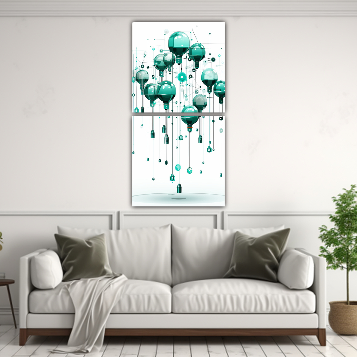 El Díptico Calidos Inspiración es perfecto para darle vida a cualquier espacio de tu hogar La combinación de colores vibrantes como el azul marino grisáceo, menta, turquesa y gris en un fondo blanco con puntos y líneas le dará un toque moderno y elegante a tus paredes Nuestros cuadros decorativos son impresos en tela de alta calidad con bastidores de madera, lo que garantiza durabilidad y resistencia