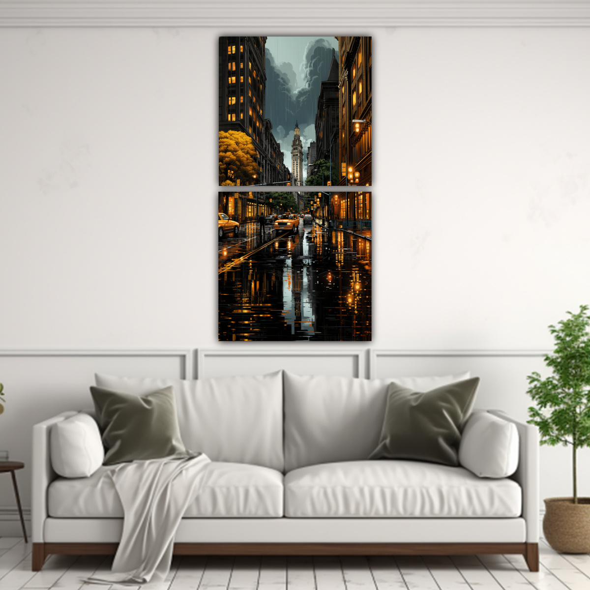 Díptico Cuadro Exuberantes Morning NYC Estilo Wassily Kandinsky