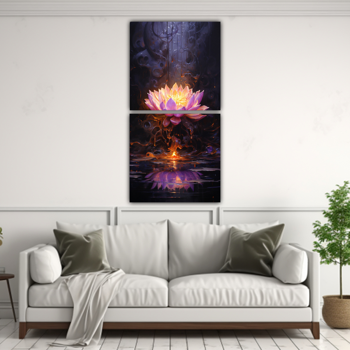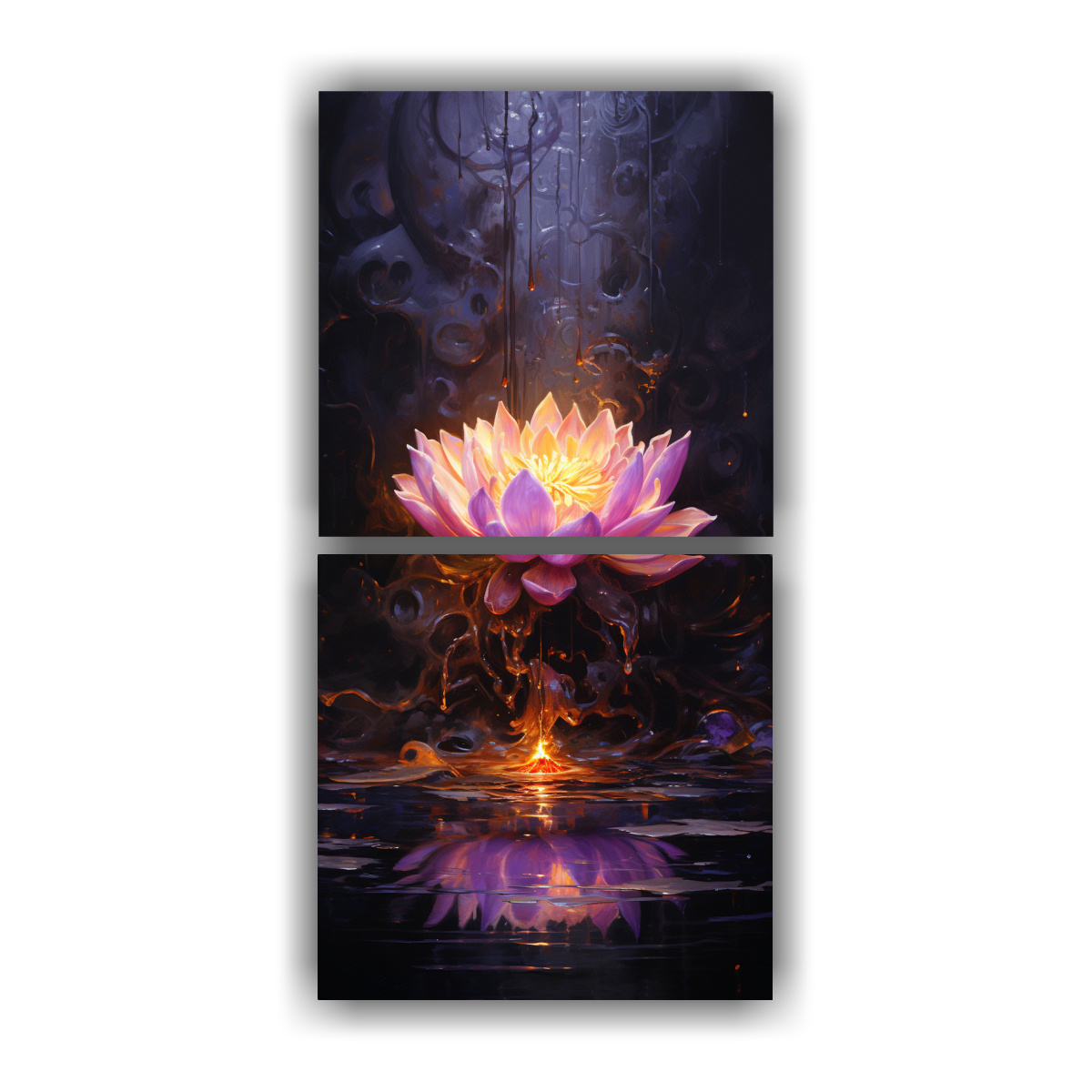 Diptico Cuadro Sensibilidad Artística Pintura De Loto Negro Resplandeciente En Lienzo