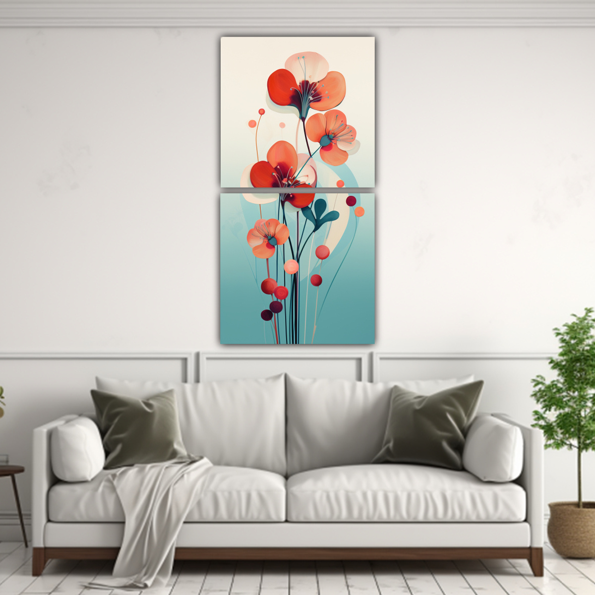 Este hermoso cuadro de flores pop minimalista textura en tonos menta, turquesa y coral, es perfecto para decorar tu sala de estar Colócalo sobre una pared blanca para que resalte y combina con cojines en tonos beige y plateado para crear un ambiente moderno y elegante