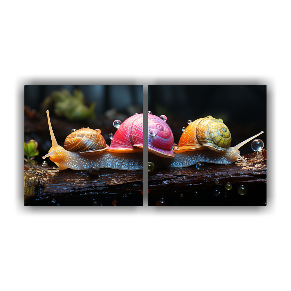 Díptico Dormitorio Alta Calidad Estilo Pintura Con Caracoles Multicolor 21
