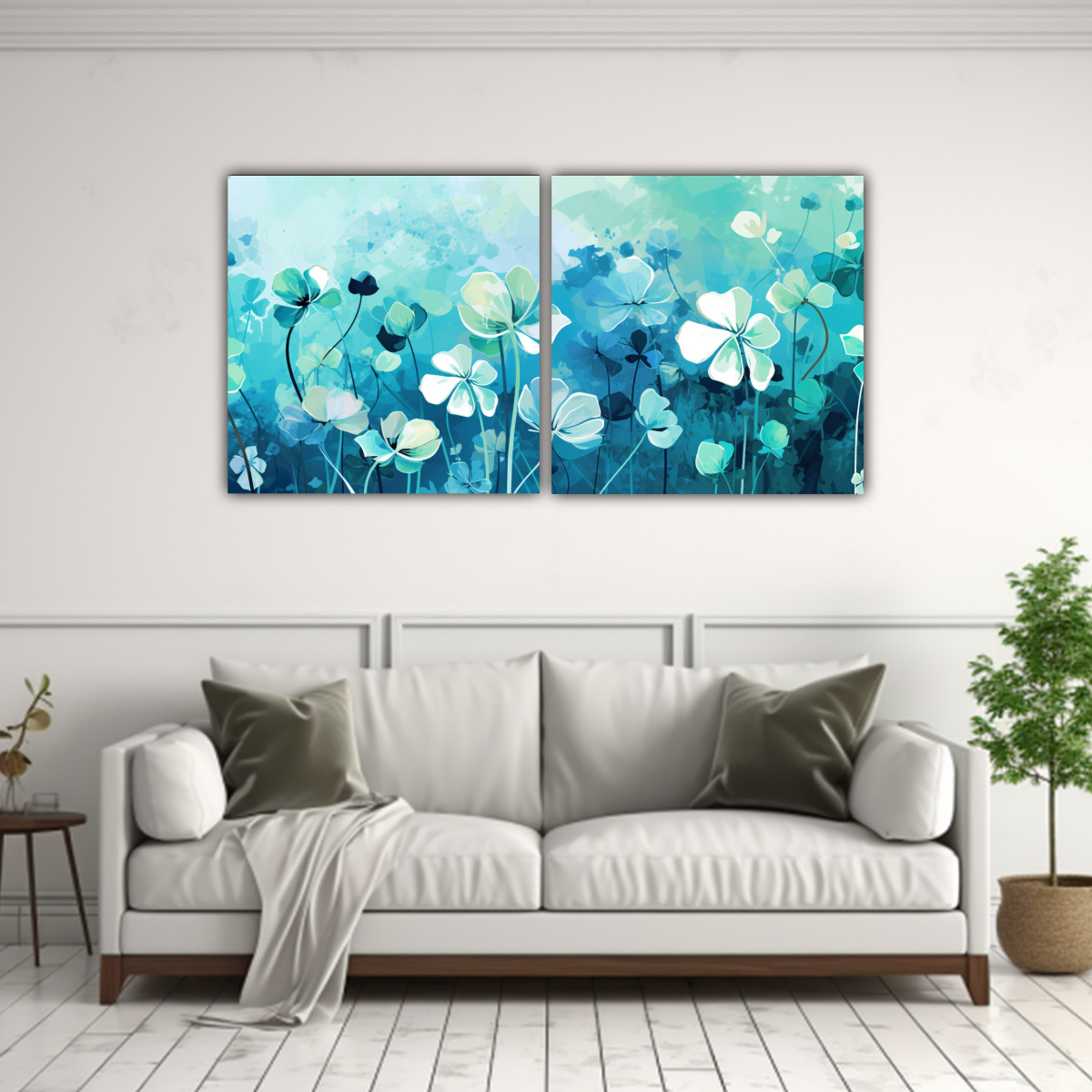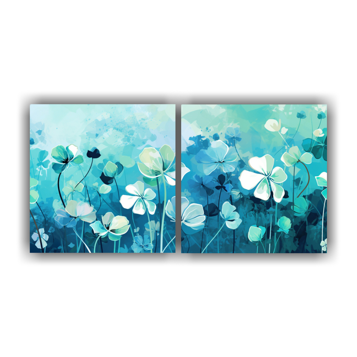 Díptico Estético Venta Hierbas Trébol En Blanco Y Turquesa, Estilo Neonoir
