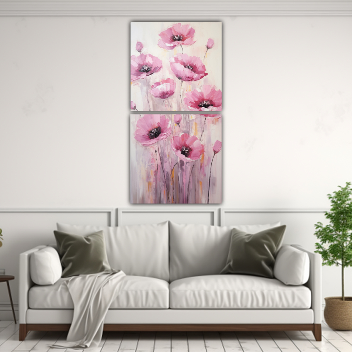 El Díptico Estilo Galería Living a pink POPPIES painting on canvas in the style of es la opción perfecta para darle vida a tus espacios Con su diseño exclusivo y la mejor calidad en impresión y materiales, este cuadro decorativo es ideal para crear un ambiente acogedor y sofisticado