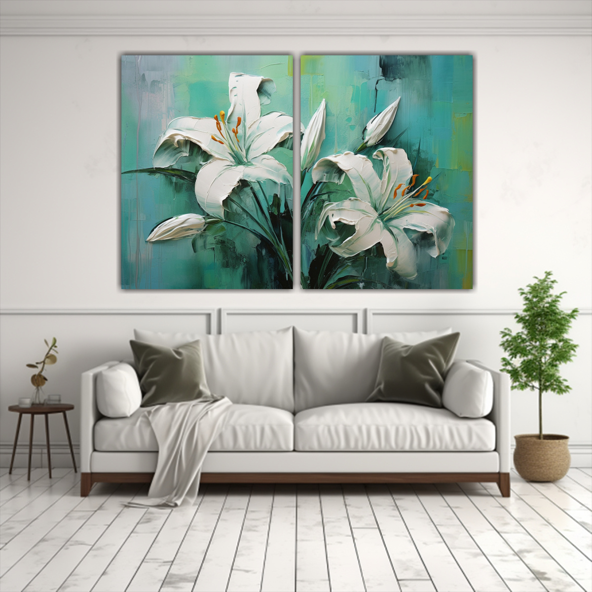Para realzar la belleza del díptico floral, colócalo en el centro de una pared blanca para que los colores resalten Combínalo con muebles en tonos neutros para crear un ambiente armonioso y elegante en tu sala de estar o dormitorio