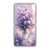 Este díptico de flores púrpura y cian en lienzo quedará espectacular en tu baño Te recomendamos colocarlo sobre la pared del lavamanos para que sea el centro de atención Complementa la decoración con toallas en tonos beige, accesorios en plateado y una alfombra en tonos turquesa o verde azulado ¡Crearás un ambiente armonioso y lleno de estilo!